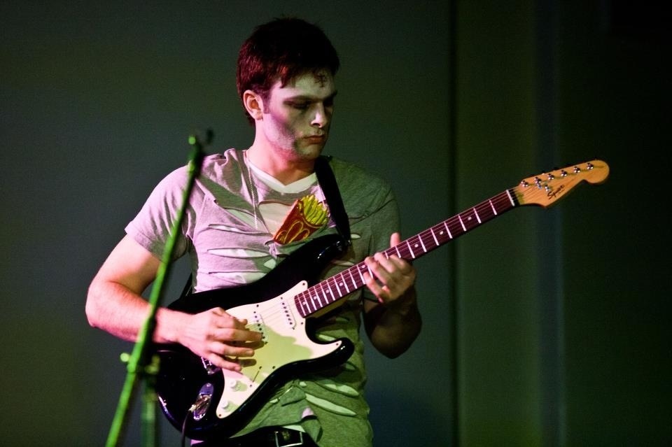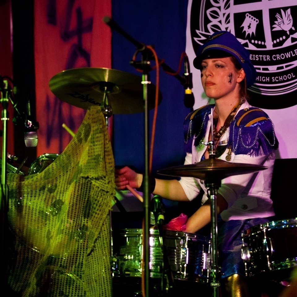 On the night, we had to wait for the Canberra Youth Orchestra to finish there rehearsal before we could even begin to set up, leaving us with just 3 hours to transform The Ainslie Arts Centre into Aleister Crowley High School. We were still getting sound check done when the crowd began to arrive, but luckily my amazing friends The Sinbirds (pictured below) covered our asses by performing a warm-up set in the carpark.