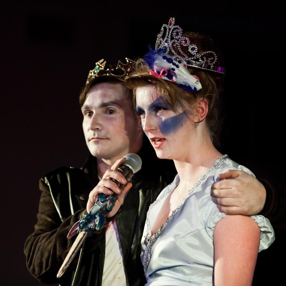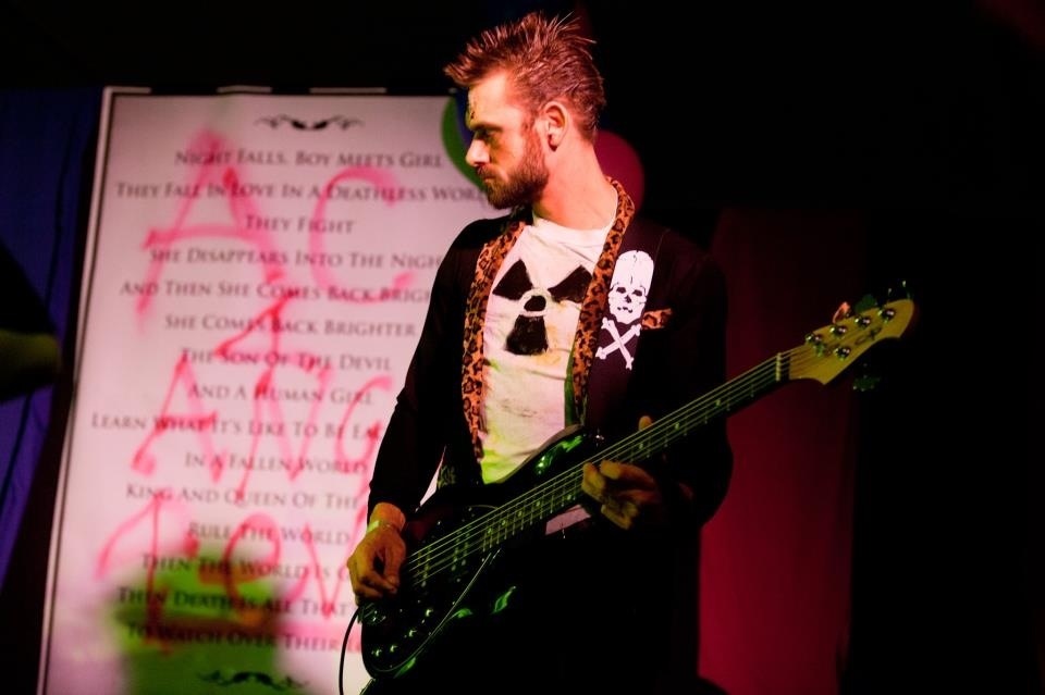Julia ‘Death’ Johnson definitely had the toughest role, singing co-lead in all of the songs while assaying her transformation from Death to Death-disguised-as-mortal-girl to Death-as-prom-queen-of-the-apocalypse. She was completely amazing, despite the failure of her keytar strap to fit over her shoulder carapace (your standard performer issue).