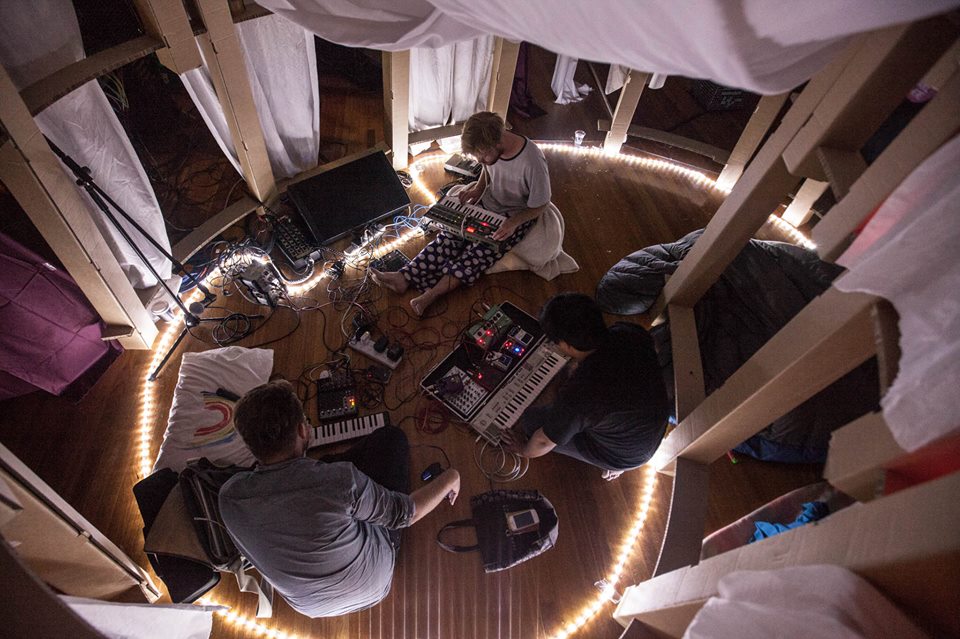 Nightfort was a noise-music-and-readings sleepover gig held in a giant blanket fort built inside a museum gallery. About 90 people came, most of them with sleeping bags and pillows, most of them staying until dawn. What would be the Bigger version of such an event?