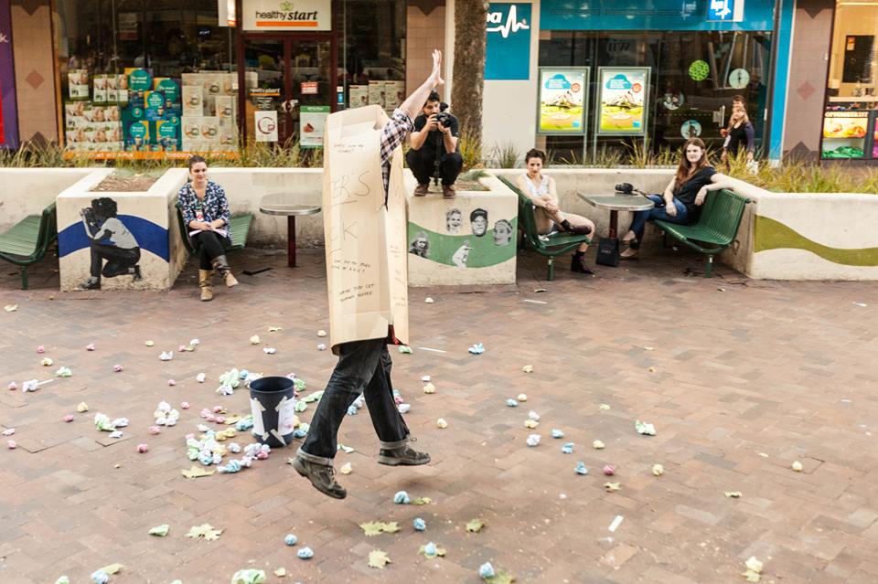 One week later and I’m just about caught up on sleep enough to post about the fourth YAH. This was, yet again, our biggest year by far in terms of profile and attendance. I think there were a fair few events that were amongst our most successful, including Free Music For Rich Kids, the multi-stage mini-music fest that was my baby. The Neon Night Rider saw almost 200 people cover their bikes with glowing materials and show up to ride around the lake together. An all-nude Riot Grrl band called Glitoris packed out our shopfront space (previously the ANZ bank) on a Monday night. We spread ourselves broad with more different types of event than ever before. We also spread ourselves thin, and the production team learnt some hard lessons about what we’ll need to do to keep doing right by our artists and audiences. That said, the You Are Here crew is still the most effective, impressive and funnest team I’ve ever been lucky enough to work with.